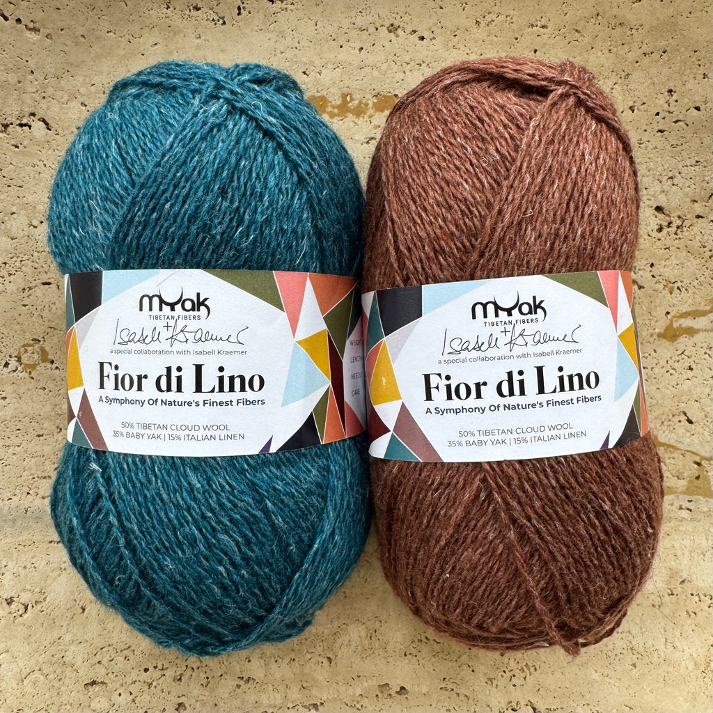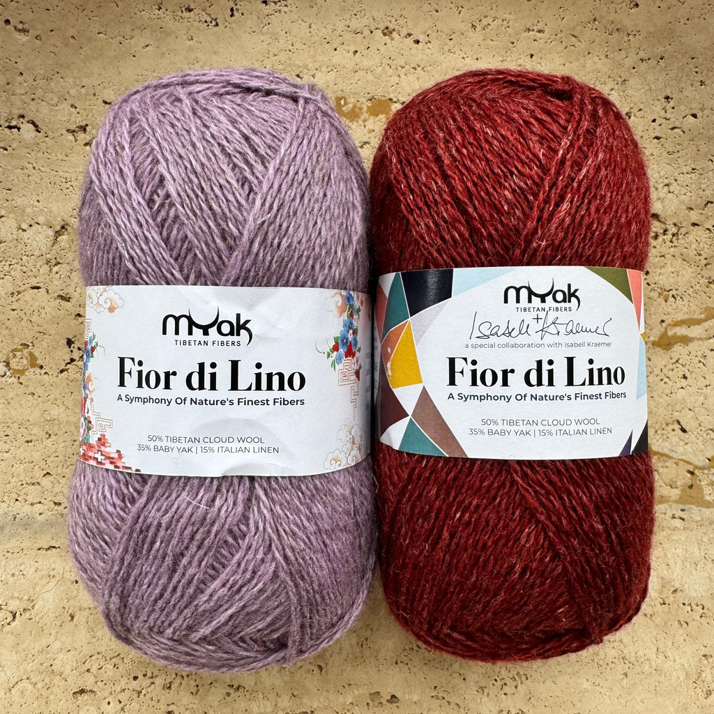 A dynamic duo worth celebrating again! Now that we’ve added beautiful new colors of mYak Fior di Lino, we’re thrilled to bring back one of our most-loved projects: Bonnie & Clyde by Isabell Kraemer. These two scarf-style shawlettes are engaging to knit, versatile to wear, and even more stunning in Fior di Lino’s expanded palette.