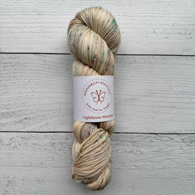 Like its sister yarns, Fanshell Fingering and Cypress Drift DK, Lighthouse is dyed in a palette inspired by our coastal home: think golden sands, windswept shores, and misty cypress groves. Cast on something cozy, and let this new yarn light the way.