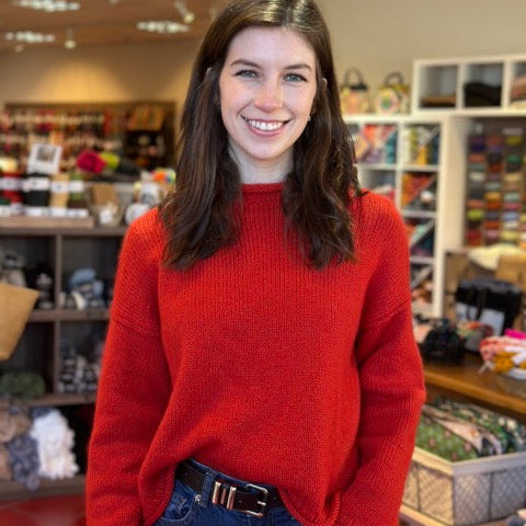 The perfect sweater for the coziest season. Molly knit her Cloud Sweater in Knitting for Olive Heavy Merino and Silk Mohair held together, creating a fabric that’s unbelievably soft, warm, and elegant. This top-down, seamless design begins with a simple yoke shaped by short rows and increases for a flattering fit, finished with relaxed sleeves and a soft funnel collar. A polished, wearable layer you’ll reach for again and again all season long!