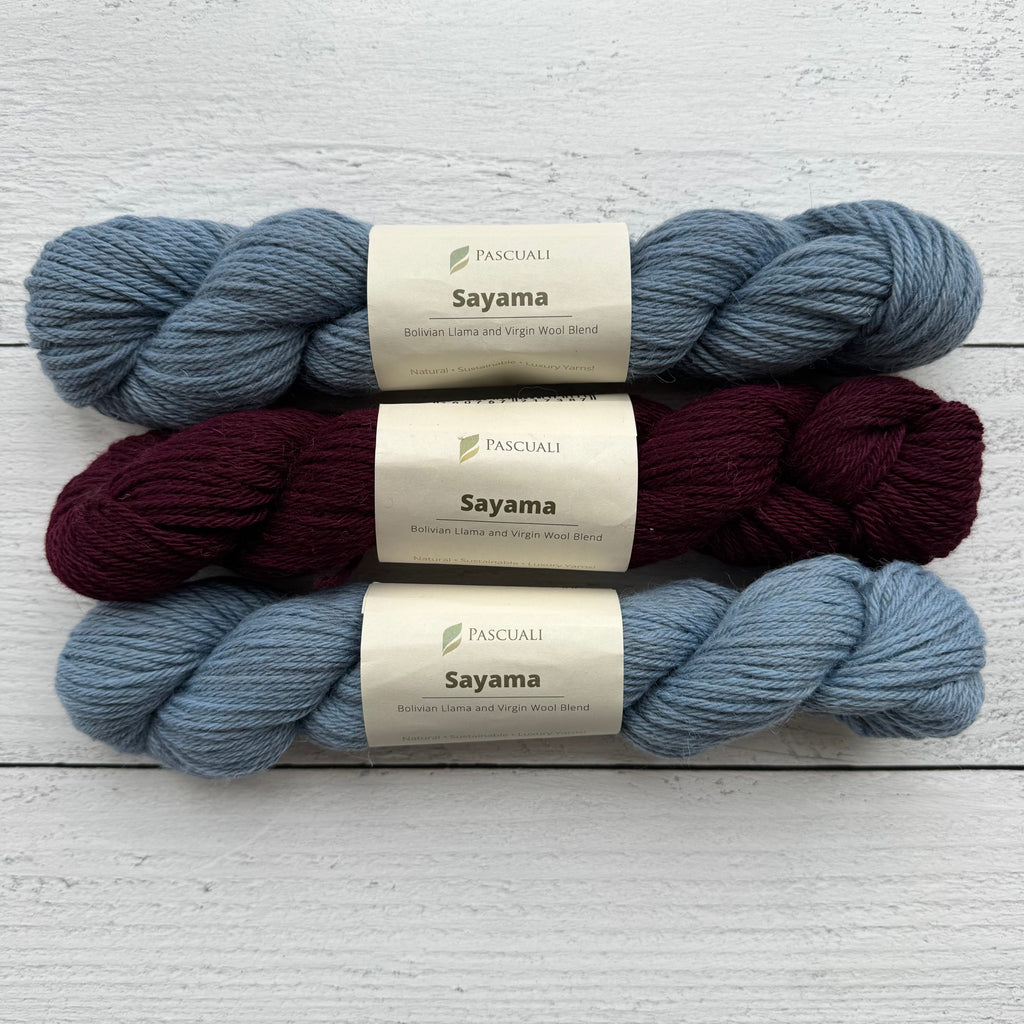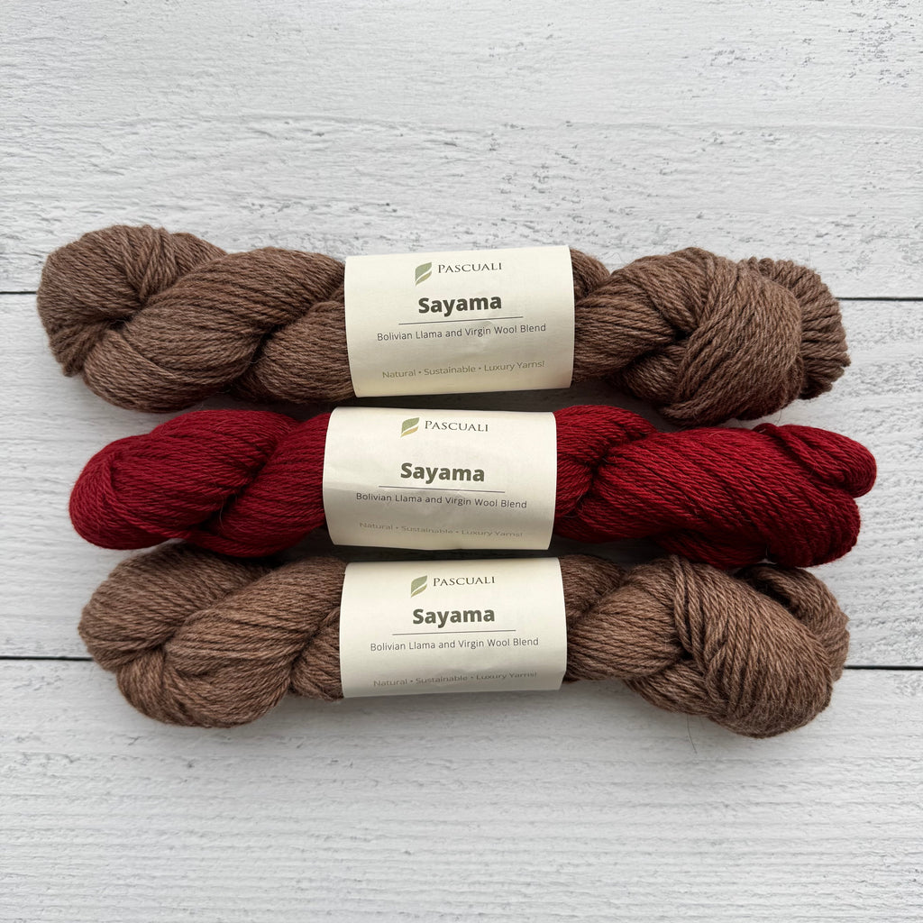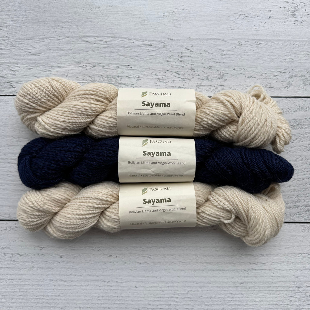 • For sizes 2XL and 3XL, please order one additional skein of each color in Pascuali Sayama.