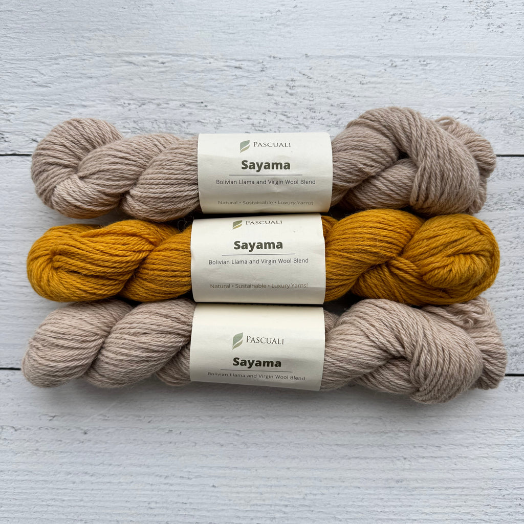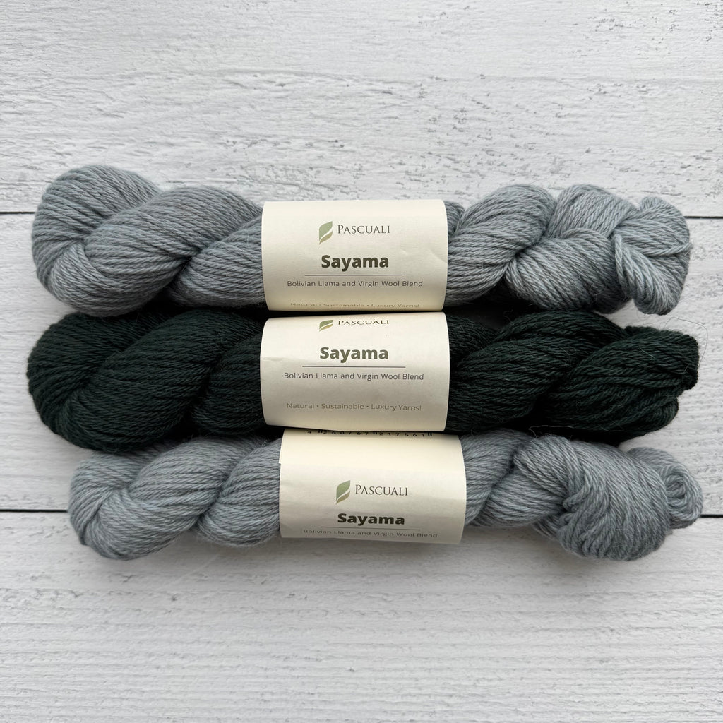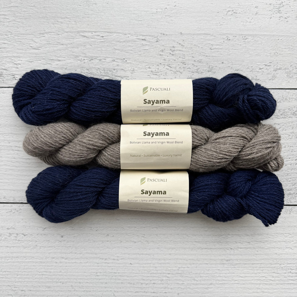 • For sizes 2XL and 3XL, please order one additional skein of each color in Pascuali Sayama.