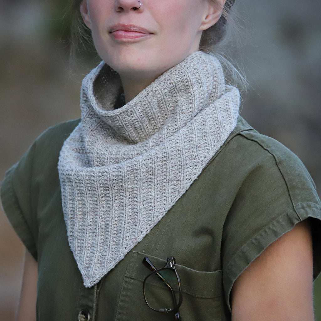 Named for the Maine saying “I’m right out straight,” the ROS Shawl by Alicia Plummer is designed as a peaceful pause amid life’s busyness. This petite, textural kerchief is perfect for those moments when you just need to knit and breathe. We’ve paired it with North Bay Fibers Elemental Fingering, a soft, natural wool that makes this one-skein project a delight to make and to wear.