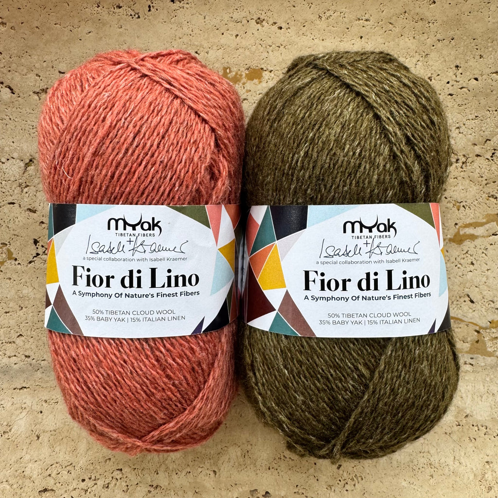 A dynamic duo worth celebrating again! Now that we’ve added beautiful new colors of mYak Fior di Lino, we’re thrilled to bring back one of our most-loved projects: Bonnie & Clyde by Isabell Kraemer. These two scarf-style shawlettes are engaging to knit, versatile to wear, and even more stunning in Fior di Lino’s expanded palette.