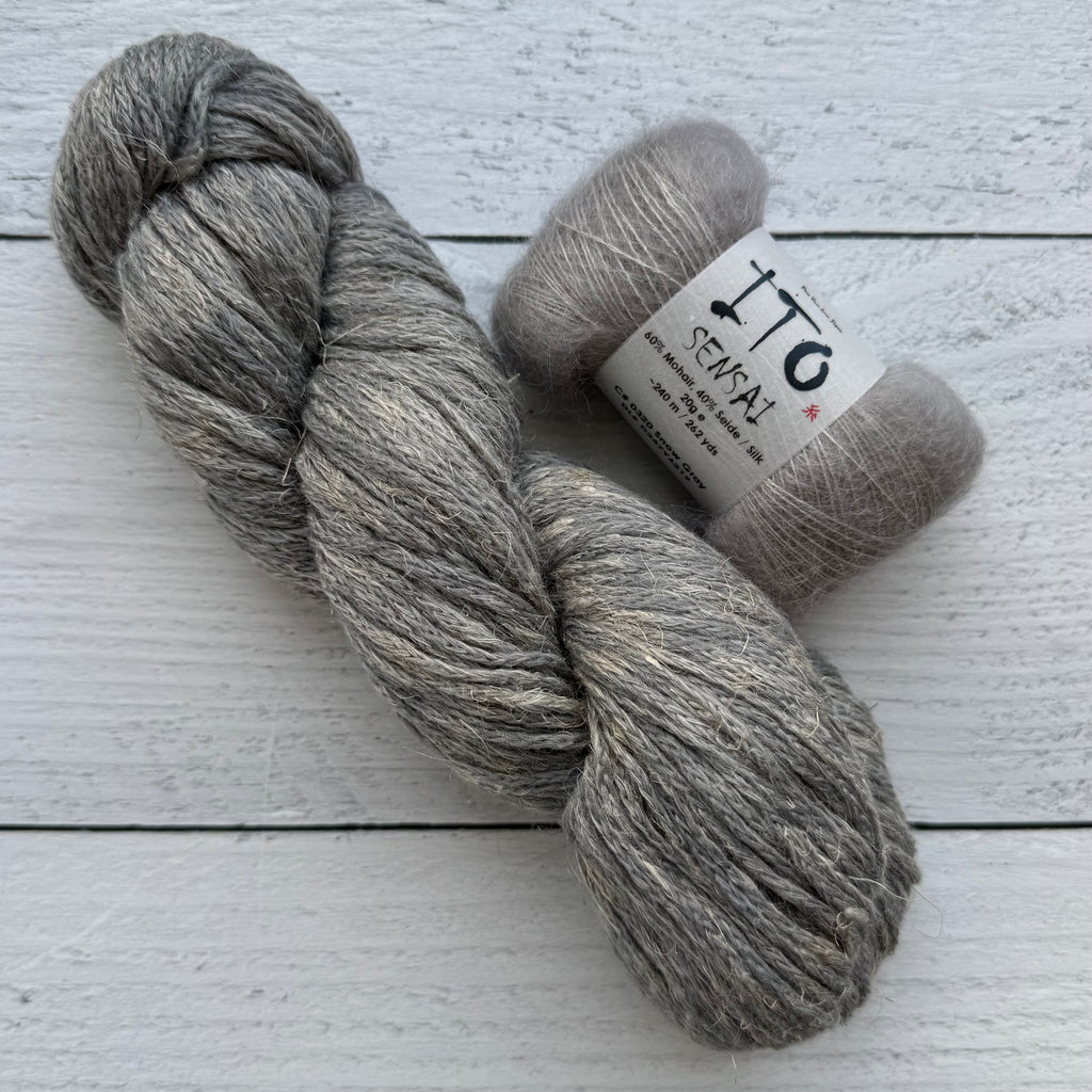 This darling scarf is the perfect finishing layer. Knit flat with a beautiful textured motif (and a helpful video tutorial!), it’s as enjoyable to make as it is to wear. We’re pairing Woolfolk Stra with ITO Sensai for a fabric that’s incredibly soft with the loveliest halo. A little luxury you’ll treasure all season long.