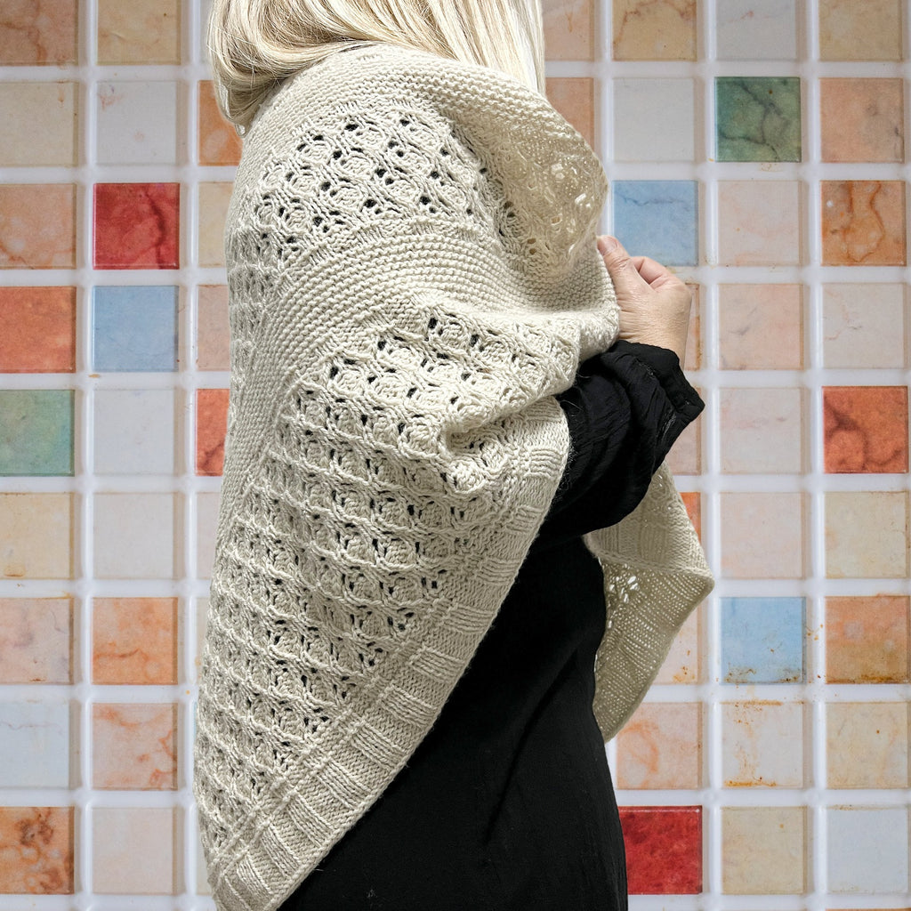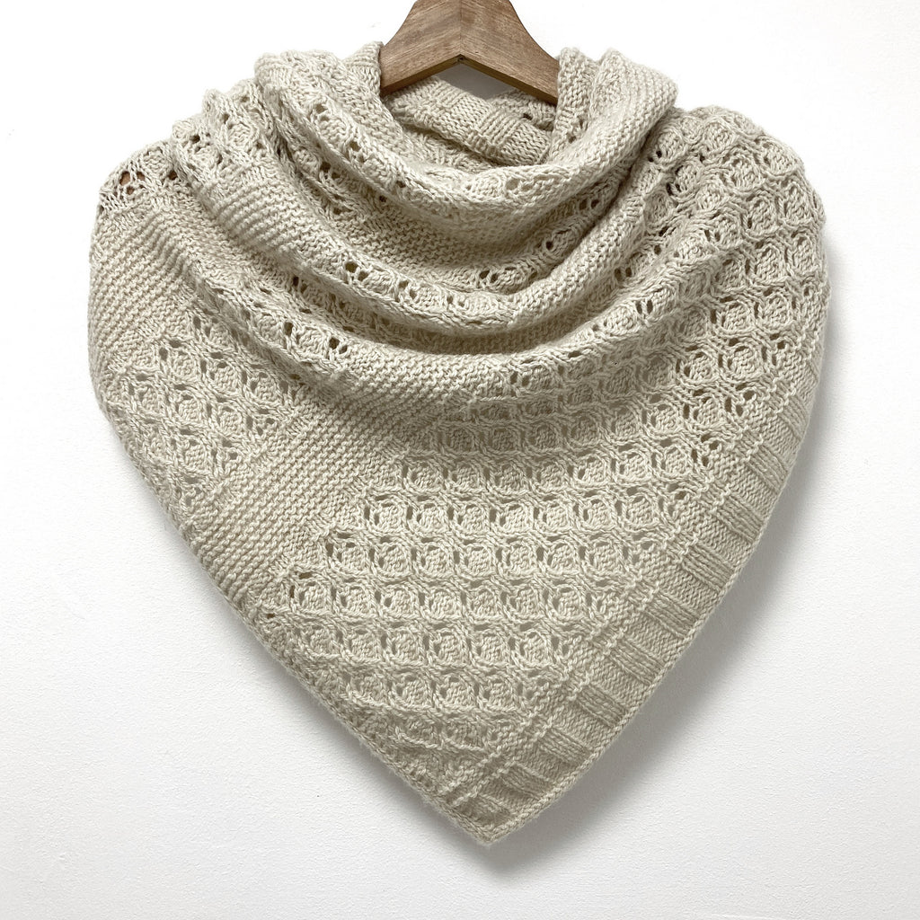 This satisfying knit features pretty bands of lace 'bulbs' between rows of garter and ribbing. Designed for mYak's Tibetan Cloud, a soft cashmere-like yarn, the stitches simply bloom. Our kits include two skeins of this delicious yarn and we've added new colors from mYak, too! Allow this stunning shawl to carry you over to spring.